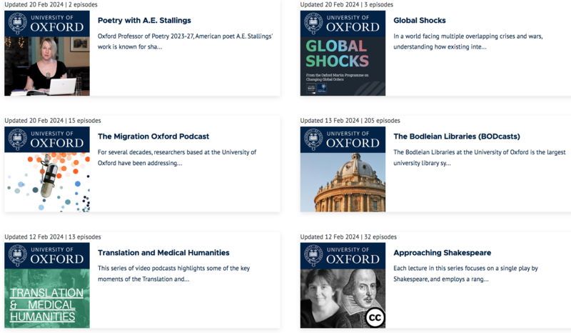 Podcasts have become a part of our lives and are listened to by millions of people every day. There are nearly 13,000 podcast episodes on the Oxford Podcasts website and the parallel Oxford Apple Podcasts service, with a global audience listening to educational material from most departments across Oxford. New material and exciting series are released every week.